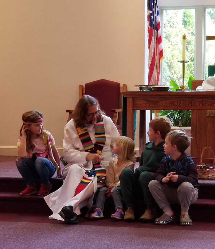During the worship service, there is a designated time for children to come to the front of the sancturary (if they are able and willing) to have a special chat regarding the Scripture and theme of the day.